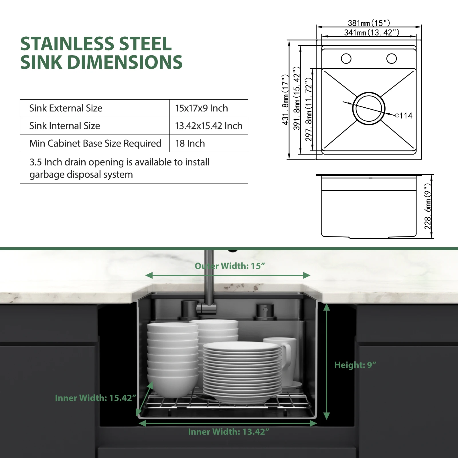 16-Gauge thick grade T304 stainless steel for durability, performance and aesthetics. With a zero radius corners for a modern look. Bottom rinse grid to prevent dents and scratches for long lasting use in your busy kitchen.Commercial Grade satin finish, corrosion and rust-resistant, easy to clean and long-lasting.