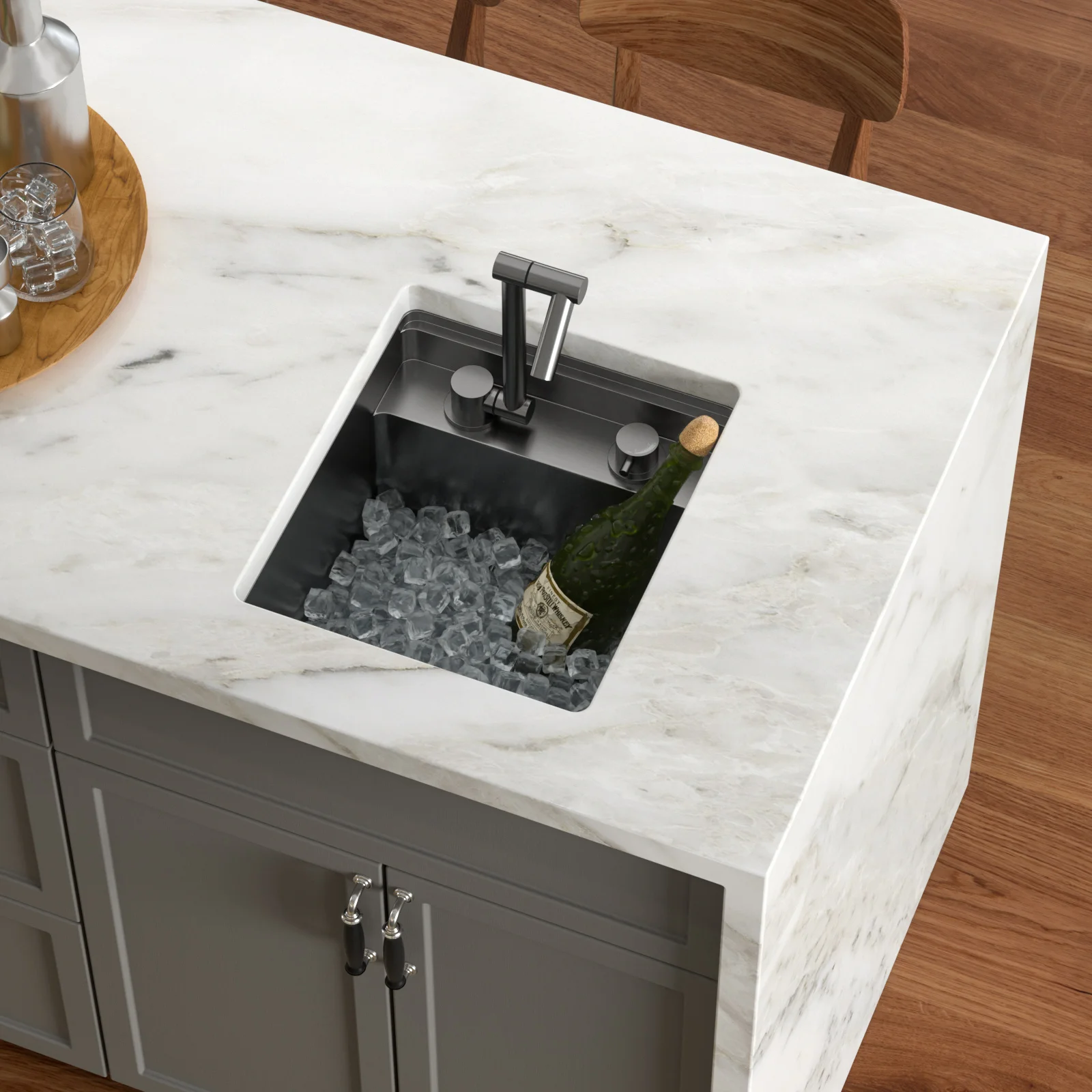 15 X 17 Inch Undermount Bar Sink Premium Stainless Steel Single Bowl with Faucet,Cutting Board Gunmetal Black RV Kitchen Sink