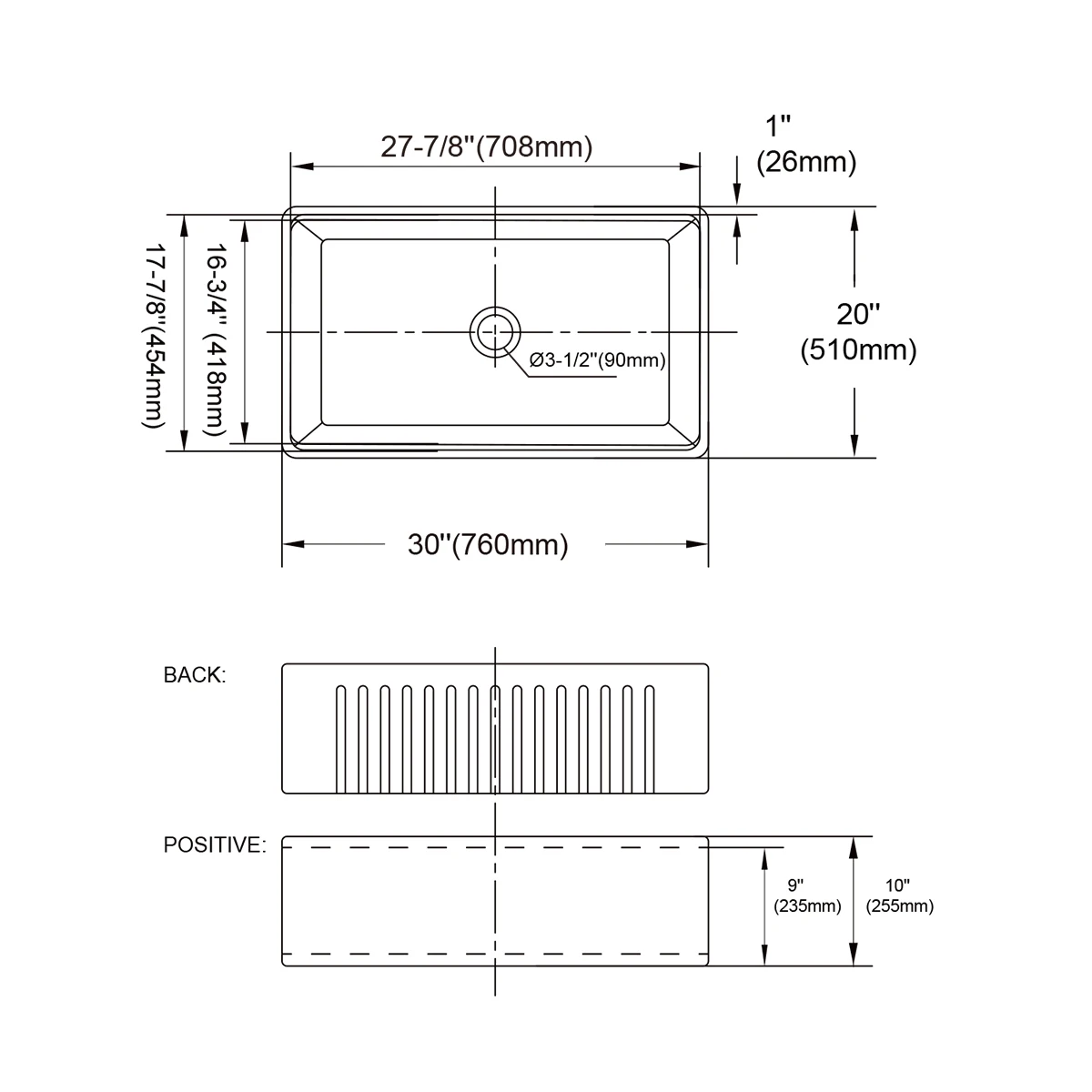 【Easy-To-Clean Porcelain Sink with Perfect Draining】The 30 inch farmhouse sinks feature with optimized gently slope, that helps keep dishes or fragile glassware from tipping over. Premium multi-layer glazed finish of fireclay farm sink easily wipes clean and defies staining and scratching. Compatible with 3.5”garbage disposals(not included)