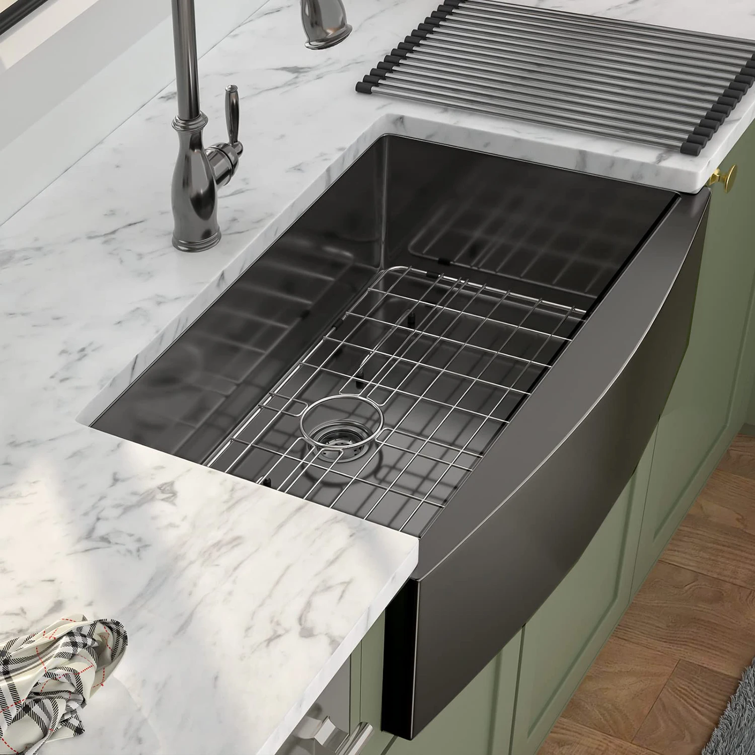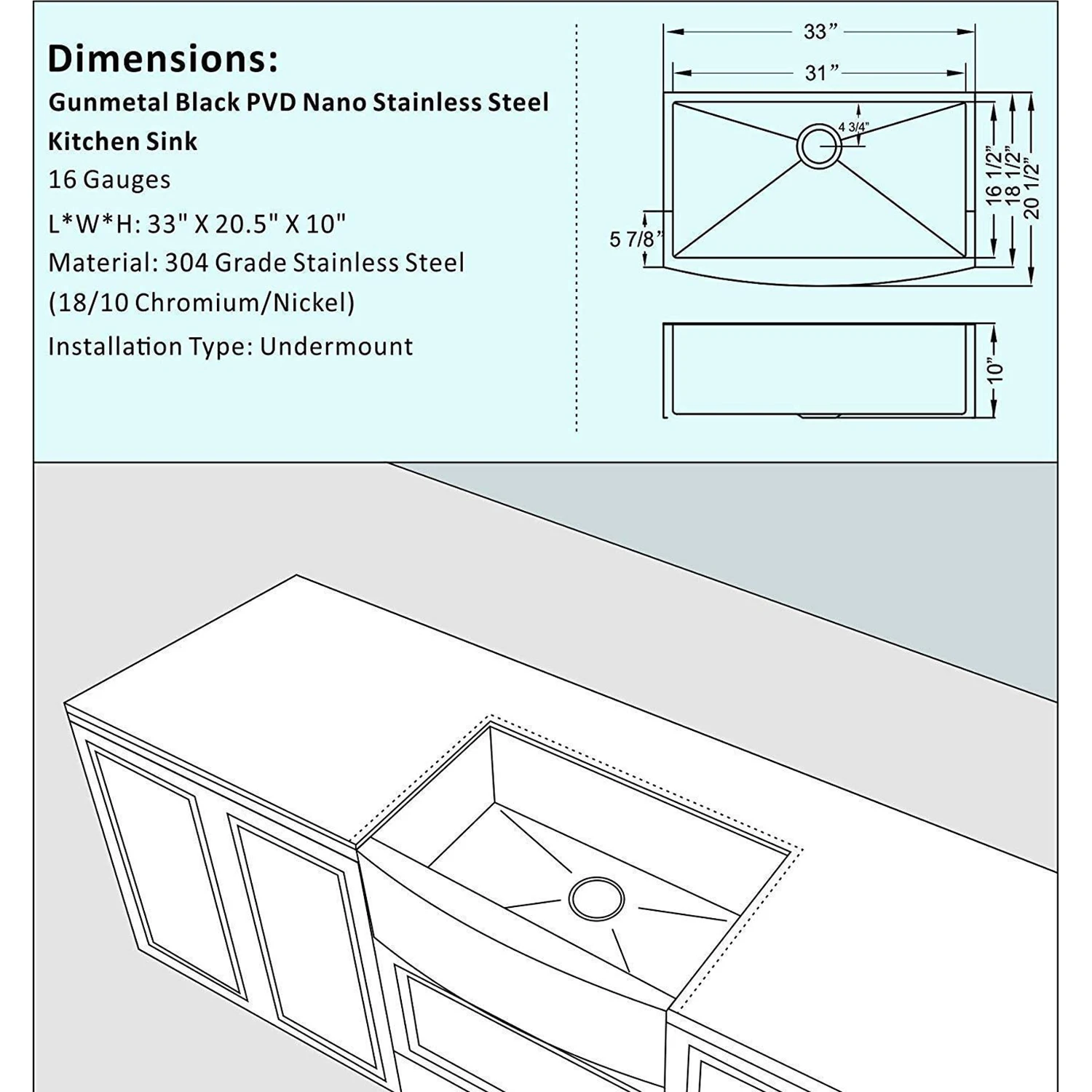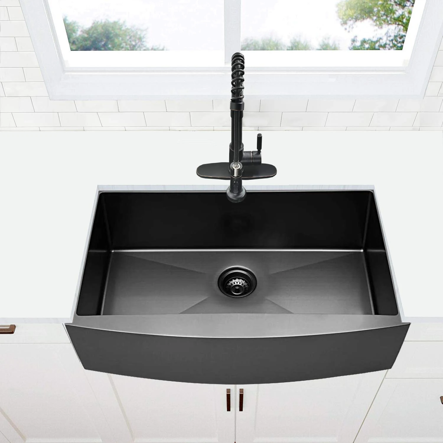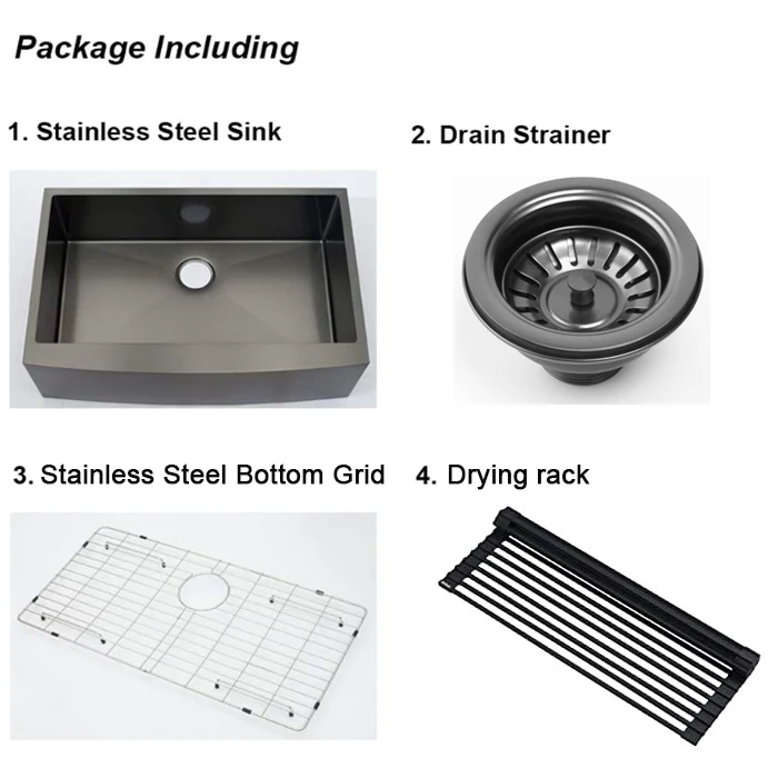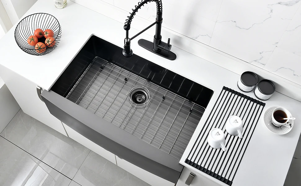 33 Inch Gunmetal Black Apron Front Nano PVD Sinks Handmade Stainless Steel Kitchen Sink