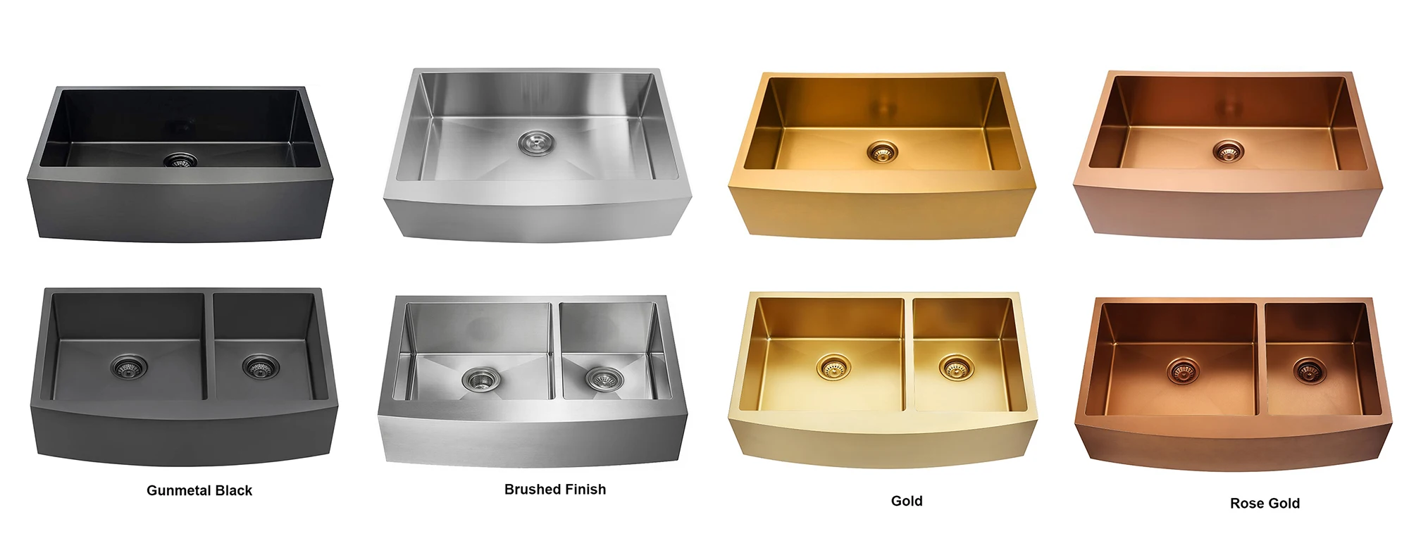 A:We have more than 20 different finishes for our customers: Chrome, brushed nickel, polished nickel, ORB, matte black, brushed black, gunmetal black, ice black, brushed gunmetal black, gold, champaign gold, rose gold, matte gold, brushed gold, champaign bronze, bronze, etc…