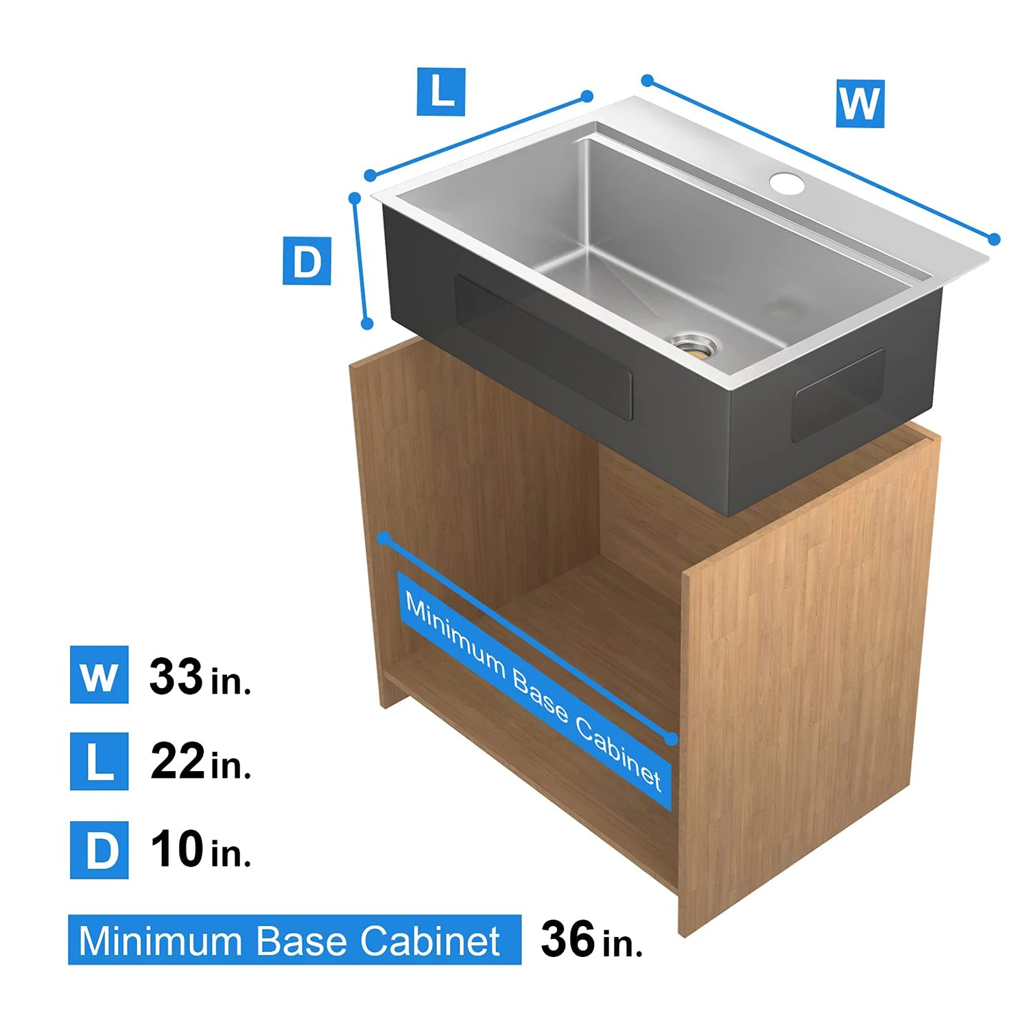 Large 33 X 22 Inch Handmade Sink SUS 304 All in One Top Mounts Workstation Kitchen Sink